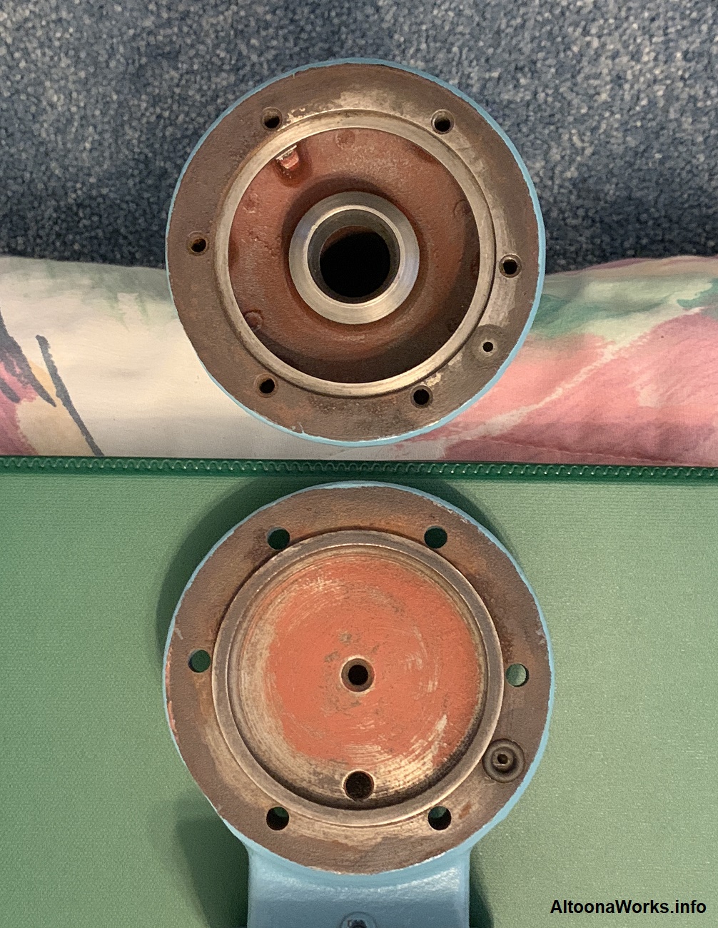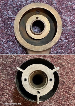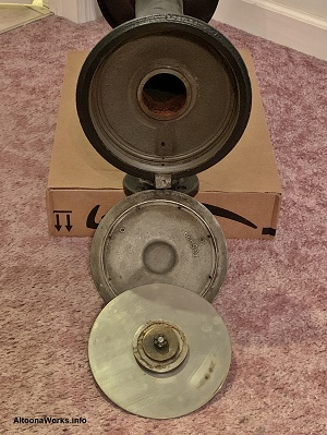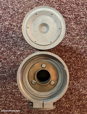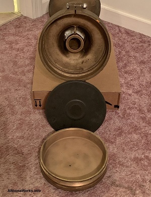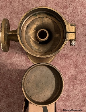 PRR Steam Locomotive Bell Made at the PRR's Altoona Shops, this bell has four engine numbers stamped into it. |