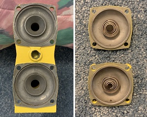 Leslie RS-31 Over the course of several months I pieced this single chime SuperTyphon together and painted it to represent the single note horns that were once on Conrail switchers. Those single note horns used the Leslie 25 and 31 bells. The 31 bell came from the Everett Railroad and the other two major parts came from parts available from collectors online. I was looking for a S power chamber, but they're harder to find; so I settled on an RS. |