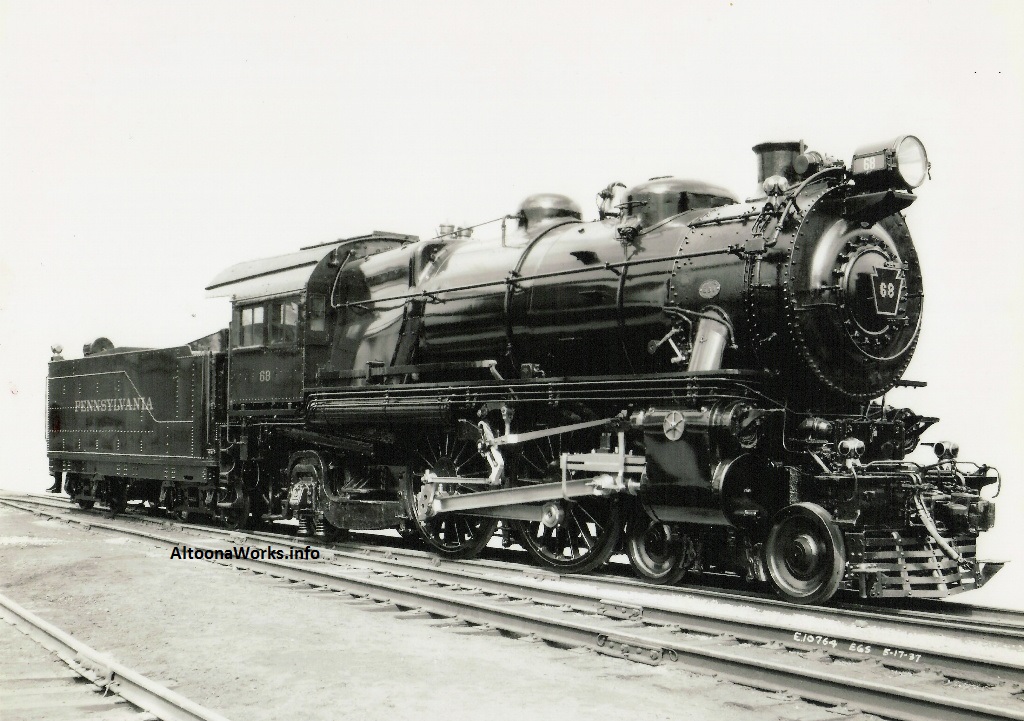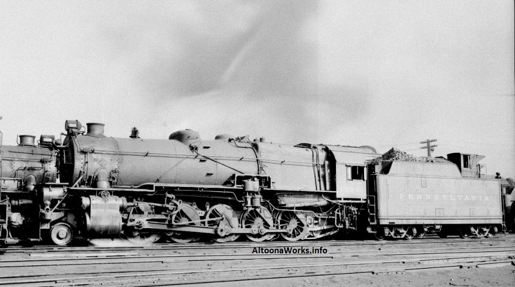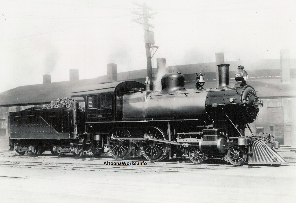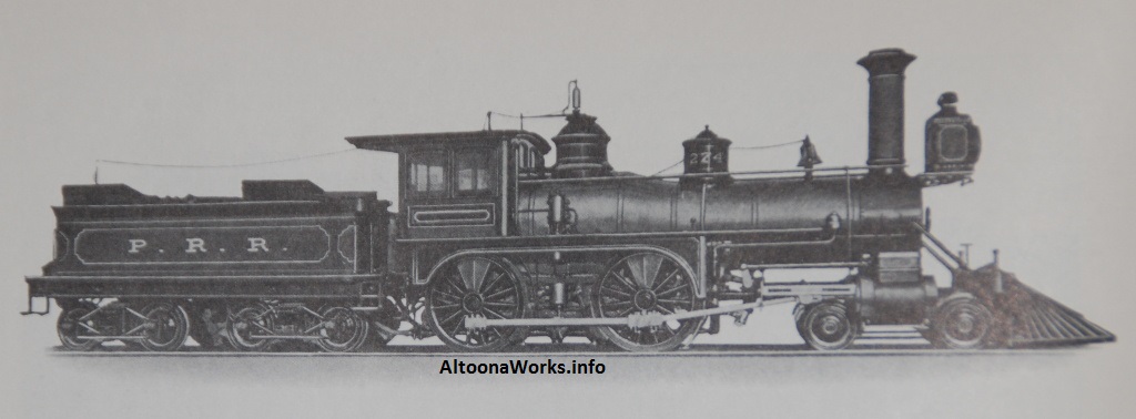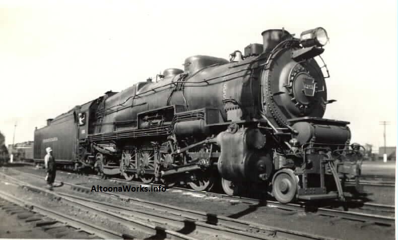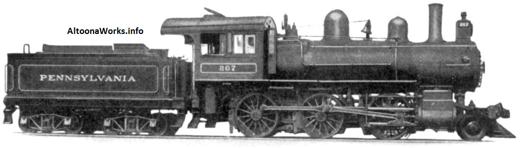 This shows later-built engines of its class. Earlier ones had diamond stacks and no extended smokebox. There were 545 of these built at various shops: 366 at Altoona, 25 at PRR Renovo, 72 by Baldwin, 15 by Pittsburgh Locomotive & Car Works, 45 by Grant, and 22 by PRR Fort Wayne. |
