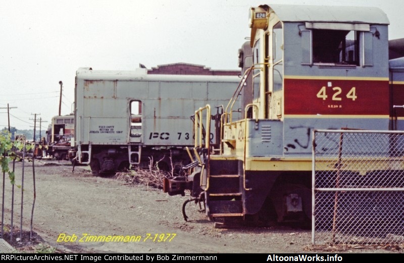 Hiding behind the former EL switcher is PC 73600, an F7B frame and shell used to transport E-unit 567 engines from the Juniata Shops to DeWitt and Wilmington during the RS-3M rebuild program. Photo by Bob Zimmermann |
