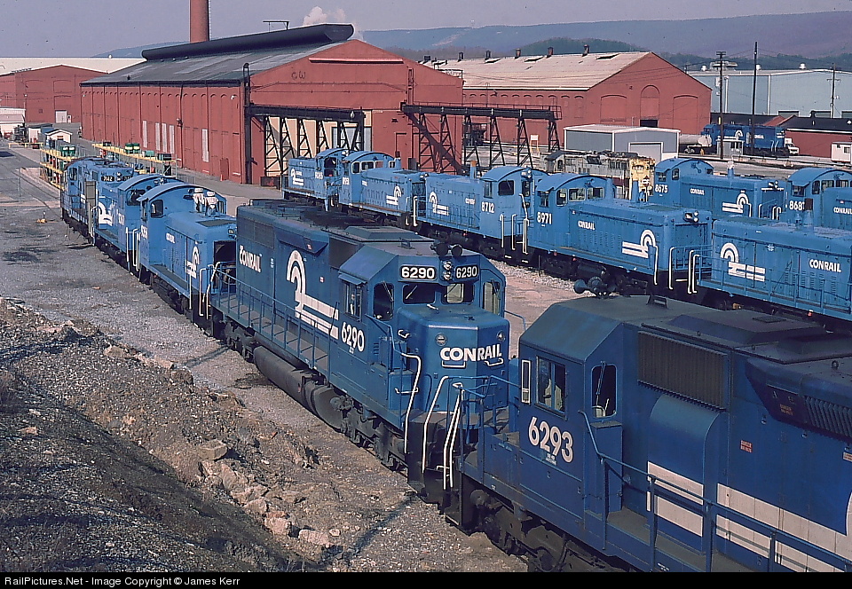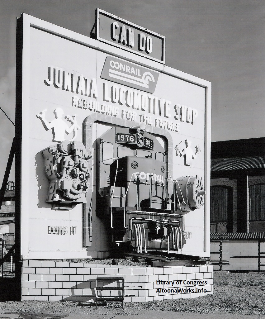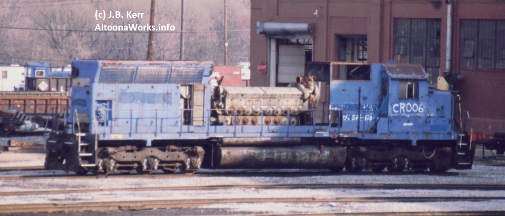Here's an interesting photo. This is the Juniata Shops testbed before being painted the grey Conrail Q#1. Today this is NS 1000. Photo by J.B. Kerr. |