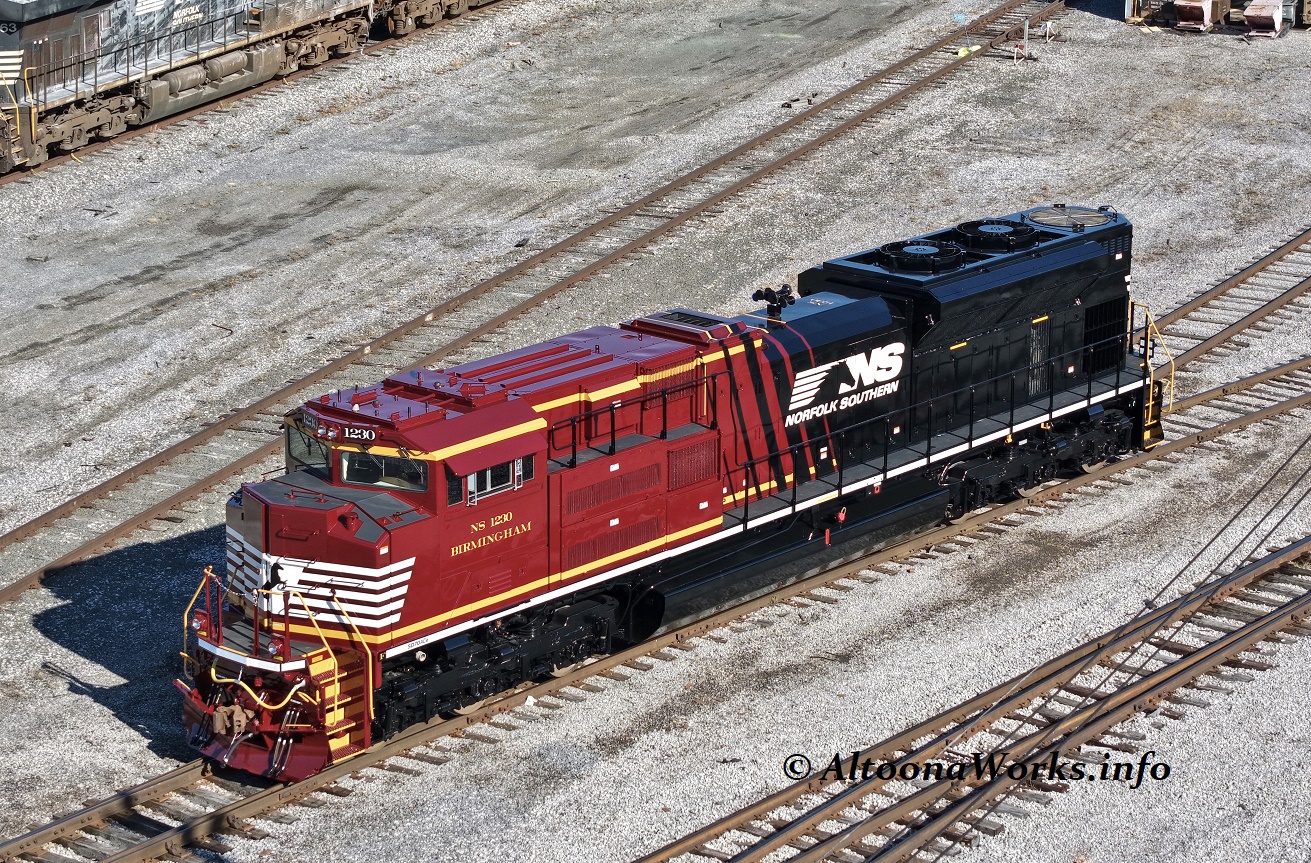 Paint Date: October 2025 Photo Date: November 2025 NS 1230 SD70ACe "Birmingham" painted up for OCS service. Photo by AltoonaWorks.info |