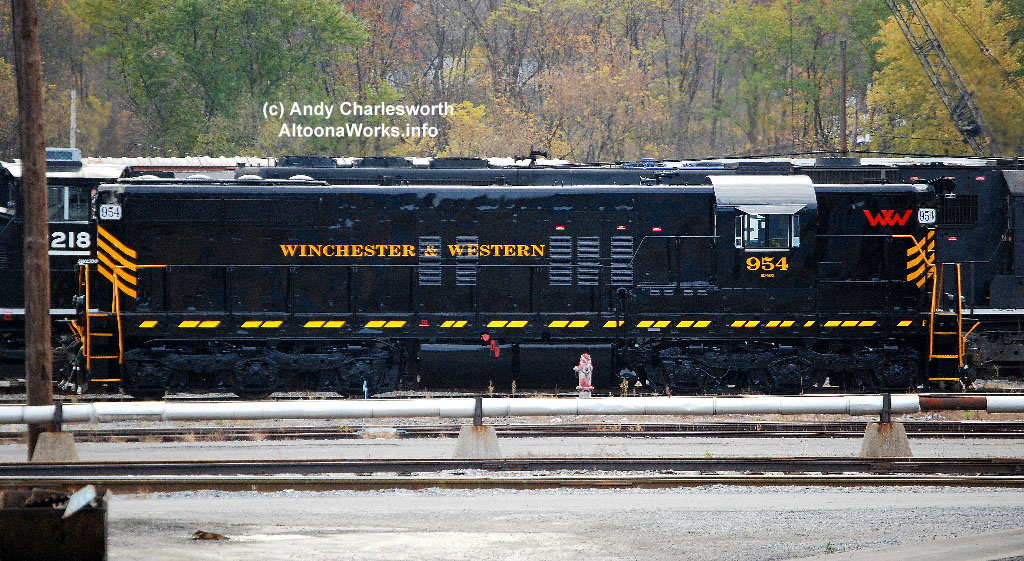 Paint Date: October 2010 Photo Date: October 2010 NS 54 has been sold to the Winchester & Western as their number 954. Here it is after an overhaul and paint job. Photo by Andy Charlesworth |