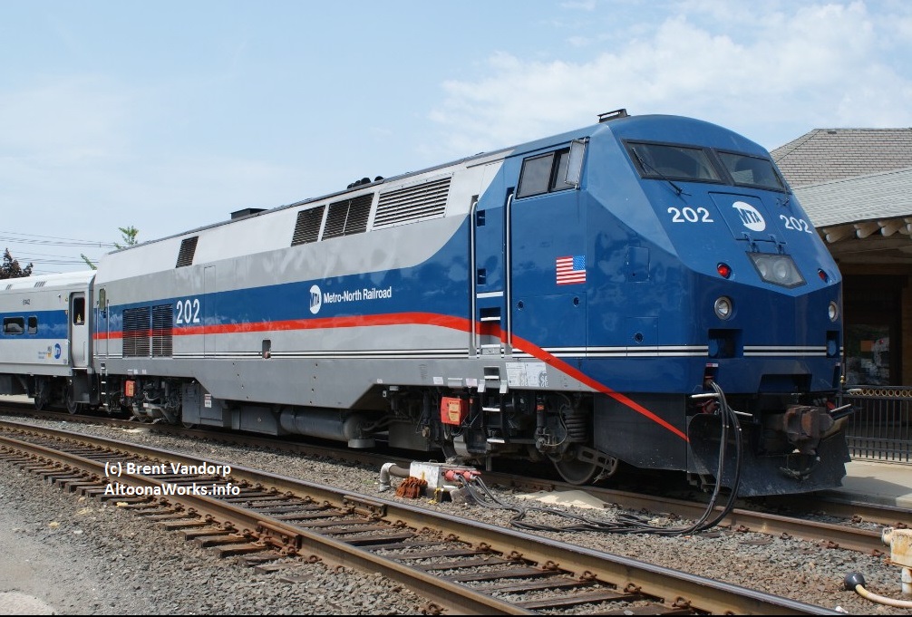 Paint Date: 2008/2009 Photo Date: May 2009 The Metro-North P32AC-DMs were overhauled by GE in Erie, then shipped to Altoona for paint. Photo by Brent van Dorp |