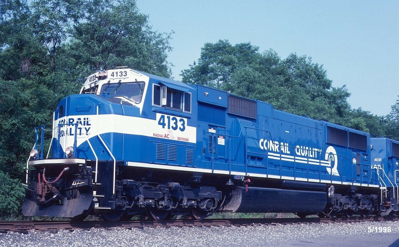 Paint Date: April 1998 Photo Date: May 1998 Conrail 4133 just one month from the paint shop. Photo by Unknown |