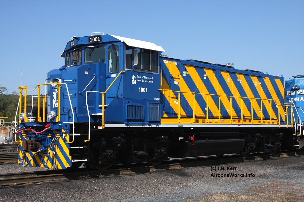 Paint Date: October 2010 Photo Date: October 2010 This new Railpower RP20BD is for the Port of Montreal. It was shipped as RPRX 1001 because POM has no reporting marks. Photo by J.B. Kerr |