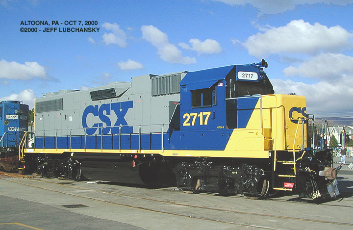 Paint Date: Fall 2000 Photo Date: October 2000 NS overhauled and repainted many former Conrail GP38-2 for CSXT after the breakup of Conrail. Photo by Jeff Lubchansky |