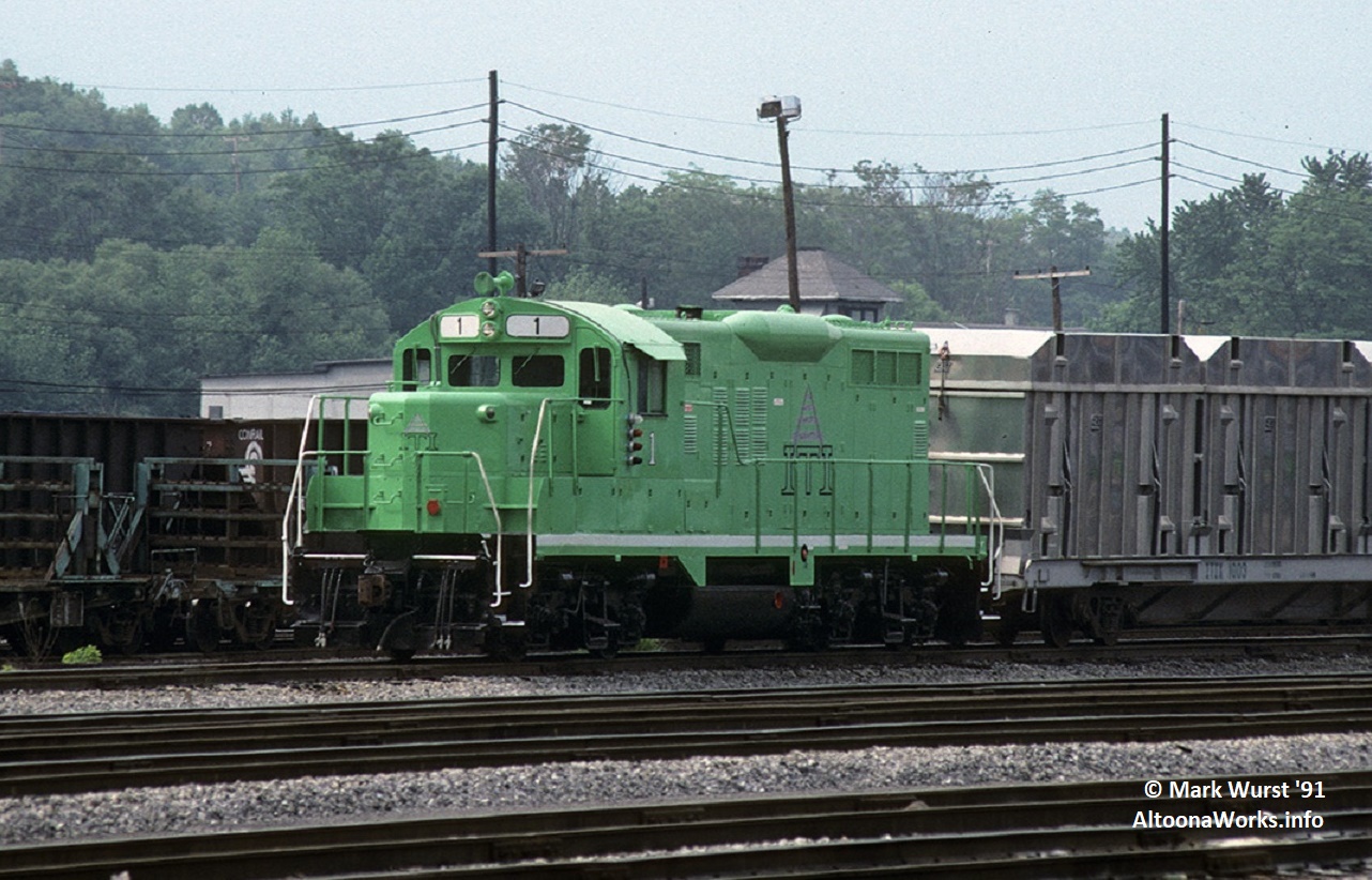 Paint Date: March 1995 Photo Date: March 1995 Point Comfort & Northern 14 MP15DC departing Altoona on a power move. Photo by Andy Charlesworth |