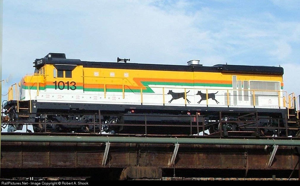 Paint Date: May 2012 Photo Date: May 2012 Yet another heritage unit? Not quite. This GP38 belongs to the North Shore RR. It would get its trucks overhauled before being sent back to its owner without lettering. Photo by Myers |