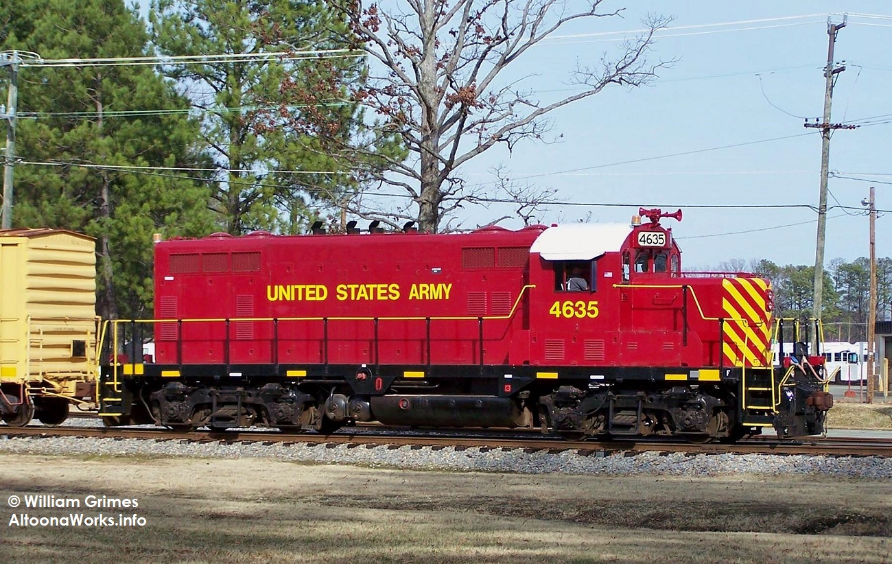 Paint Date: 1993 Photo Date: February 2011 U.S. Army 4635 GP9M was rebuilt from CSXT 1744 GP16, originally built for SAL. Photo by William Grimes |