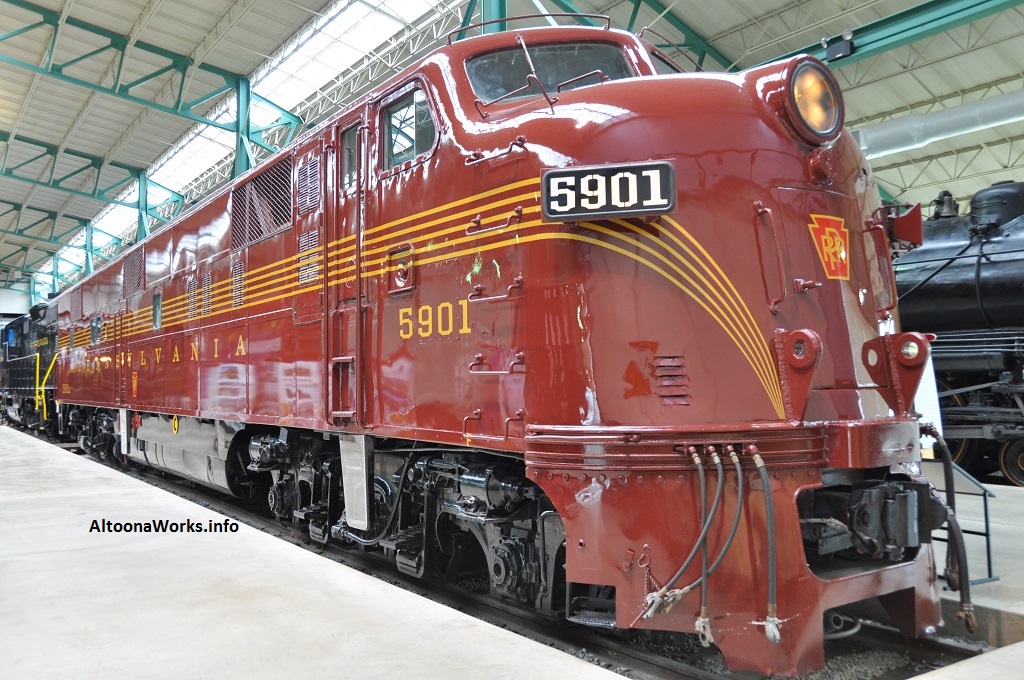 Paint Date: May 1997 Photo Date: December 2012 The last existing E7 was cosmetically restored by the Juniata Shop after it was saved from the scrapper's torch. PRR 5901 is a display at the RR Museum of PA. Photo by Myers |