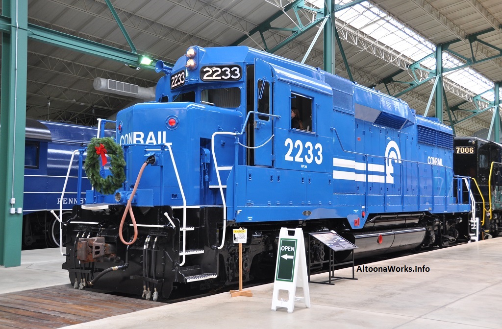 Paint Date: June 2002 Photo Date: December 2012 Conrail 2233 GP30 at the RR Museum of PA was went to the Juniata Shops in 2002 for fresh paint. Photo by Myers |