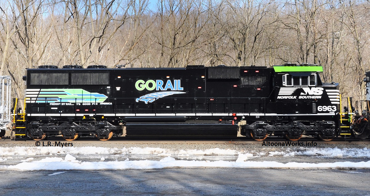 Paint Date: February 2014 Photo Date: March 2013 NS 6963 SD60E wears special GoRail decals. Photo by Myers |