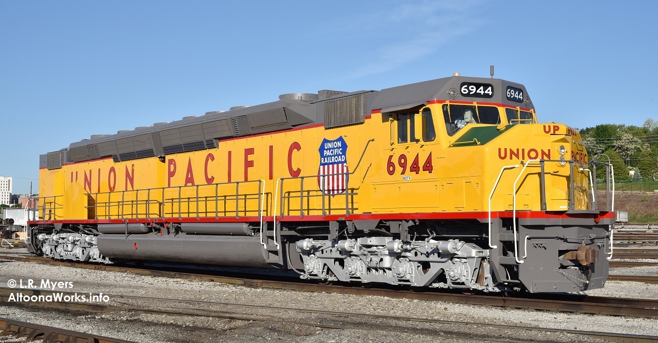 Paint Date: May 2015 Photo Date: May 2015 Union Pacific 6944 DDA40X fresh from the Juniata Paint Shop after a cosmetic restoration. Photo by Myers |