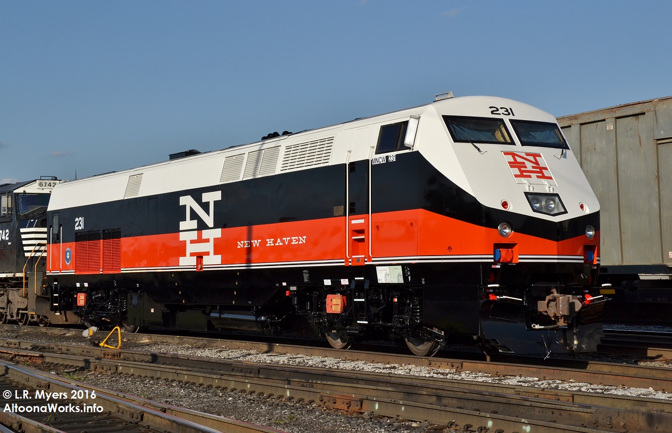 Paint Date: July 2016 Photo Date: July 2016 MNCW 231 is painted like a New Haven FL9. Yes the reporting mark is MNCW and not CDOT for some reason. All of the Metro-North and CDOT P32AC-DMs have been through Juniata at least once. They were overhauled by GE and sent to Altoona for paint. Photo by Myers |