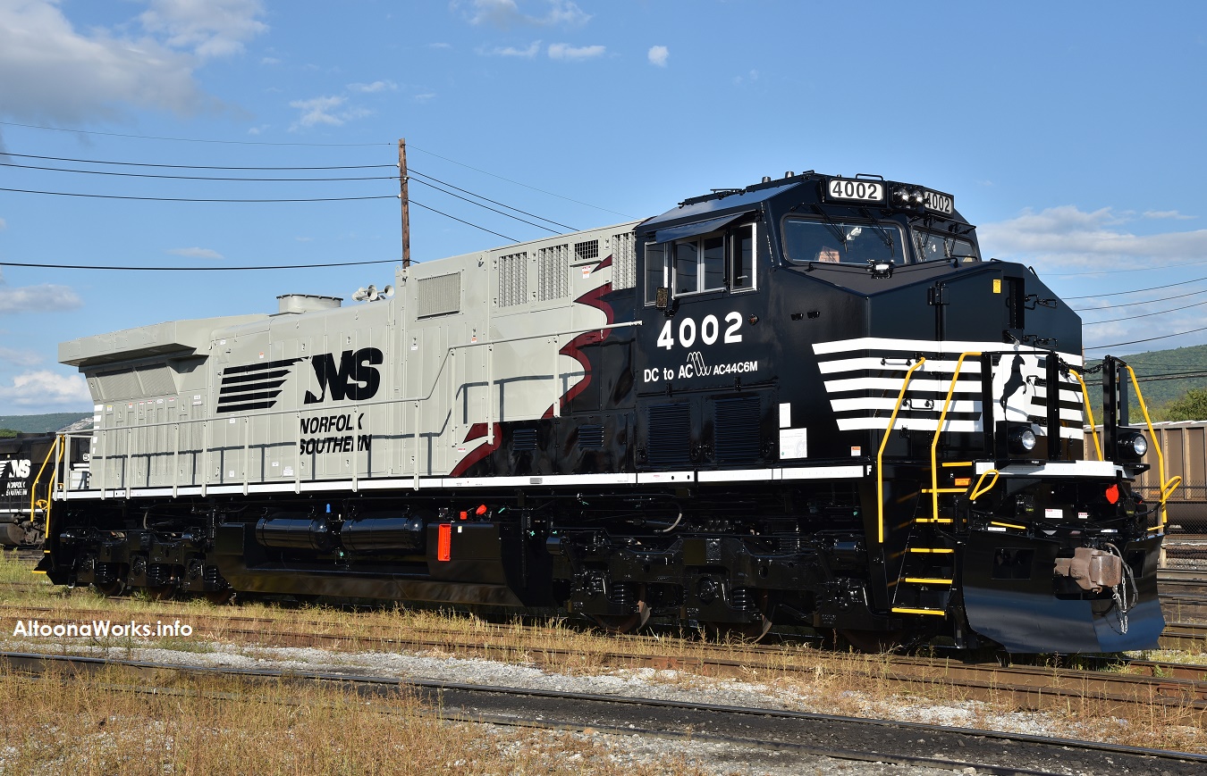 Paint Date: August 2016 Photo Date: September 2016 NS 4002 is the first AC44C6M rebuild done at Roanoke. It was painted at Altoona since Roanoke has no paint shop and Chattanooga's paint shop is currently closed. Photo by Myers |