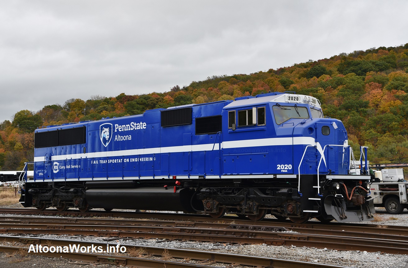 Paint Date: July 2023 Photo Date: October 2023 Honorable Mention: Painted by Curry Rail in Hollidaysburg, Penn State 2020 is a former Conrail SD60I and so far the only Conrail road unit in [quasi] preservation. The unit was built in 1994 as Conrail 5582, to NS 6721, to "PSUA" 2020. It was transferred to the Altoona Railroaders' Museum shortly after this photo. Photo by AltoonaWorks.info |